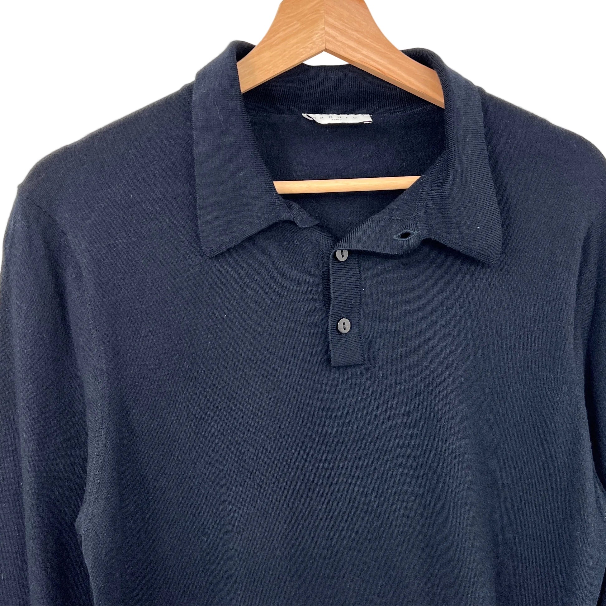 Brand: Sandro Paris | 100% wool, quarter button up polo light sweater, unisex style, compare with approx. measurements, good pre-owned condition.