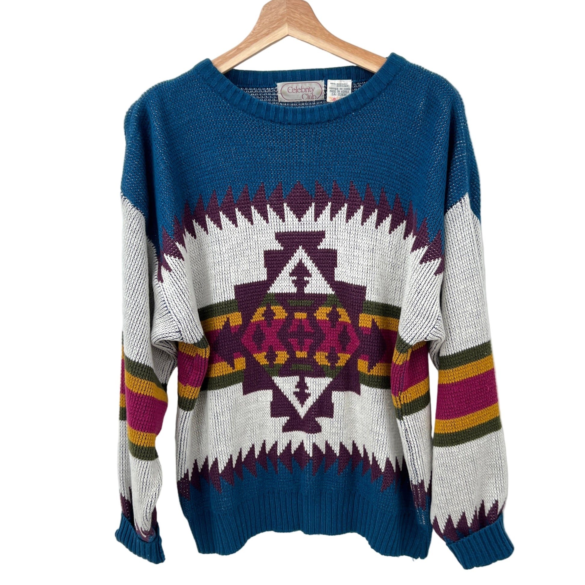 Brand: Celebrity Club | 100% acrylic, Southwestern like style, crew neck, unisex, good pre-owned and vintage condition.