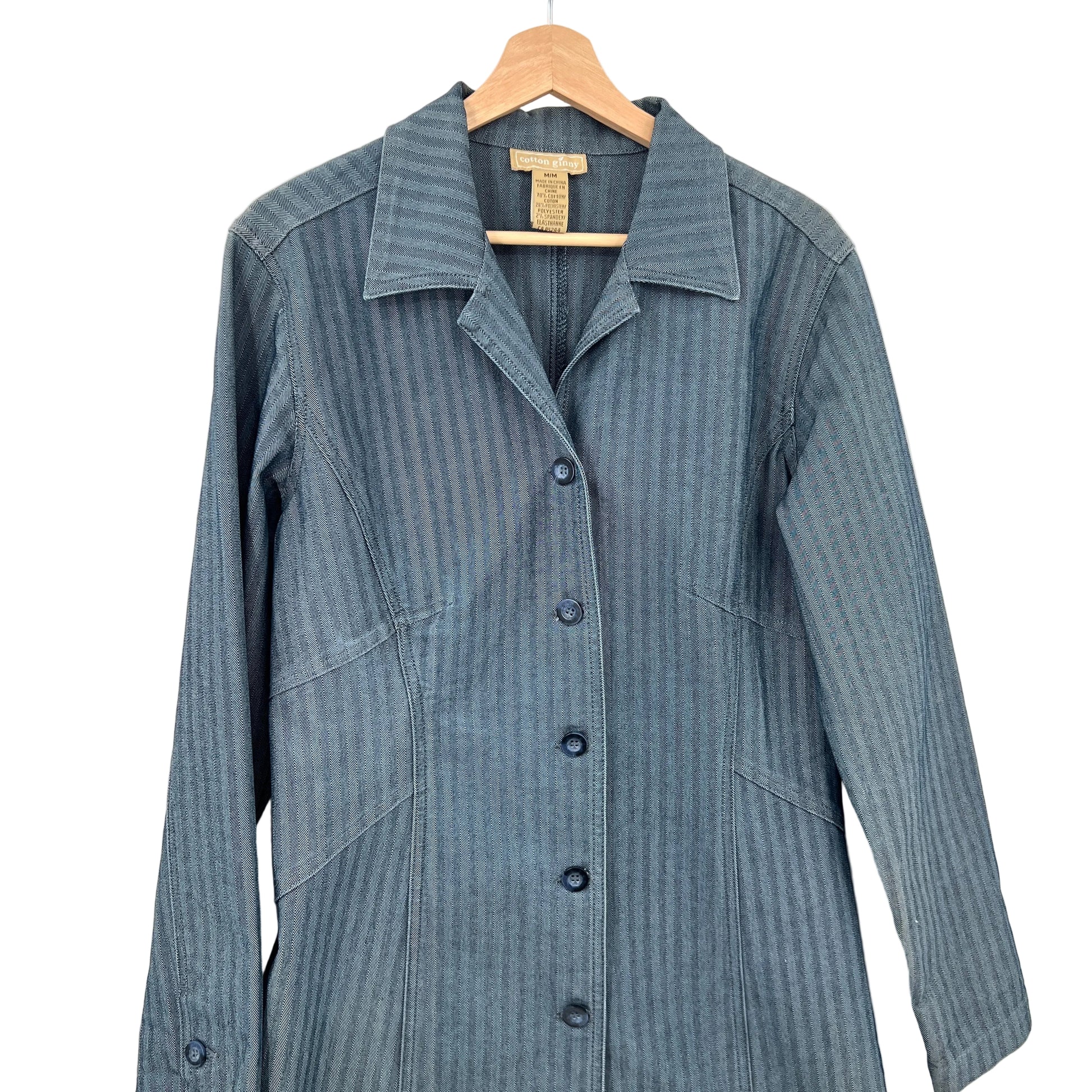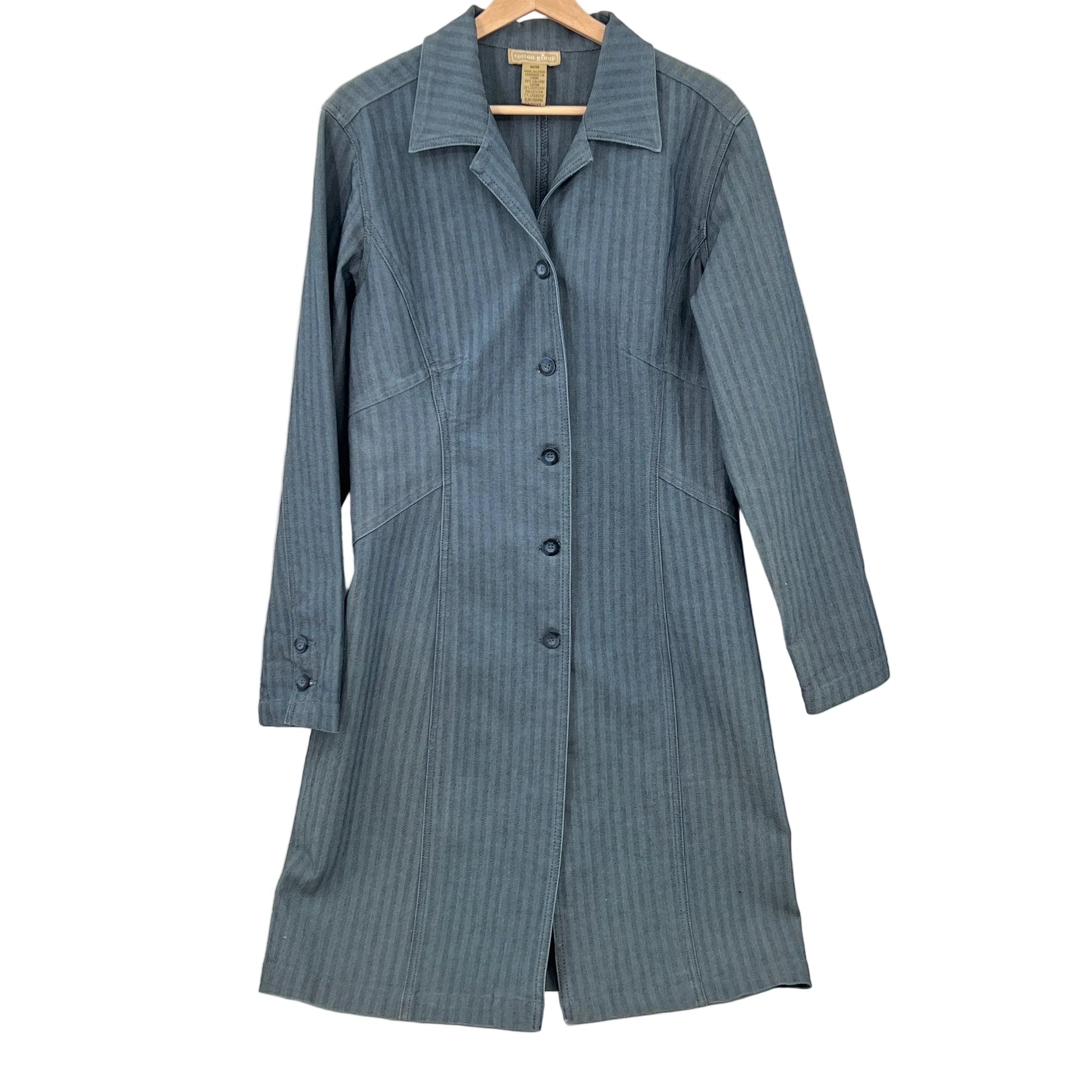 Brand: Cotton Ginny | cotton blend, unlined, long style, light jacket coat, stripes print on fabric, overall good pre-owned and vintage condition